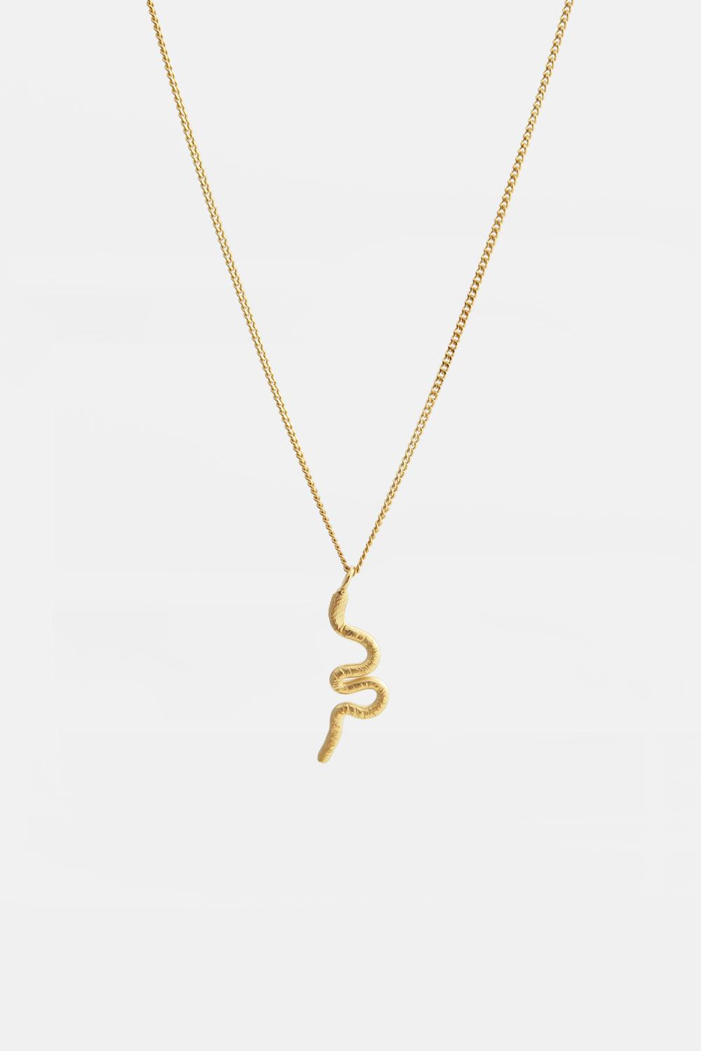 This necklace carries a hand-sculpted snake pendant, first shaped in wax, then cast in silver.
