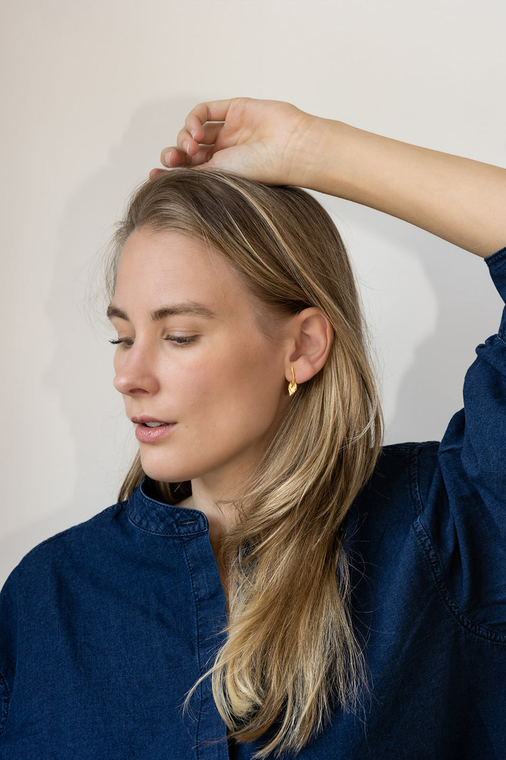 Het ontwerp is geïnspireerd op de natuur: een slank takje buigt sierlijk en eindigt in een enkel blad dat zachtjes onder het oor hangt. Deze natuurlijke vorm zorgt voor een verfijnd, minimalistisch accent.